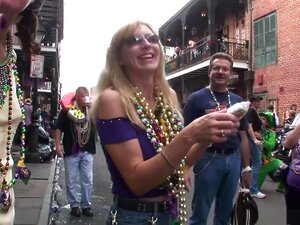 Verrückter Pornostar in exotischem brasilianischen Striptease-Erwachsenenfilm, Du bist jetzt in New Orleans, siehst eine Straßenansicht von den Hunderten wilder Damen, die es lieben, eine Reihe von Perlen zu bekommen, für jedes Mal, wenn sie ihre Titten z