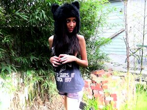 Violet Snow ist eine kleine Brünette mit Brille, die braucht